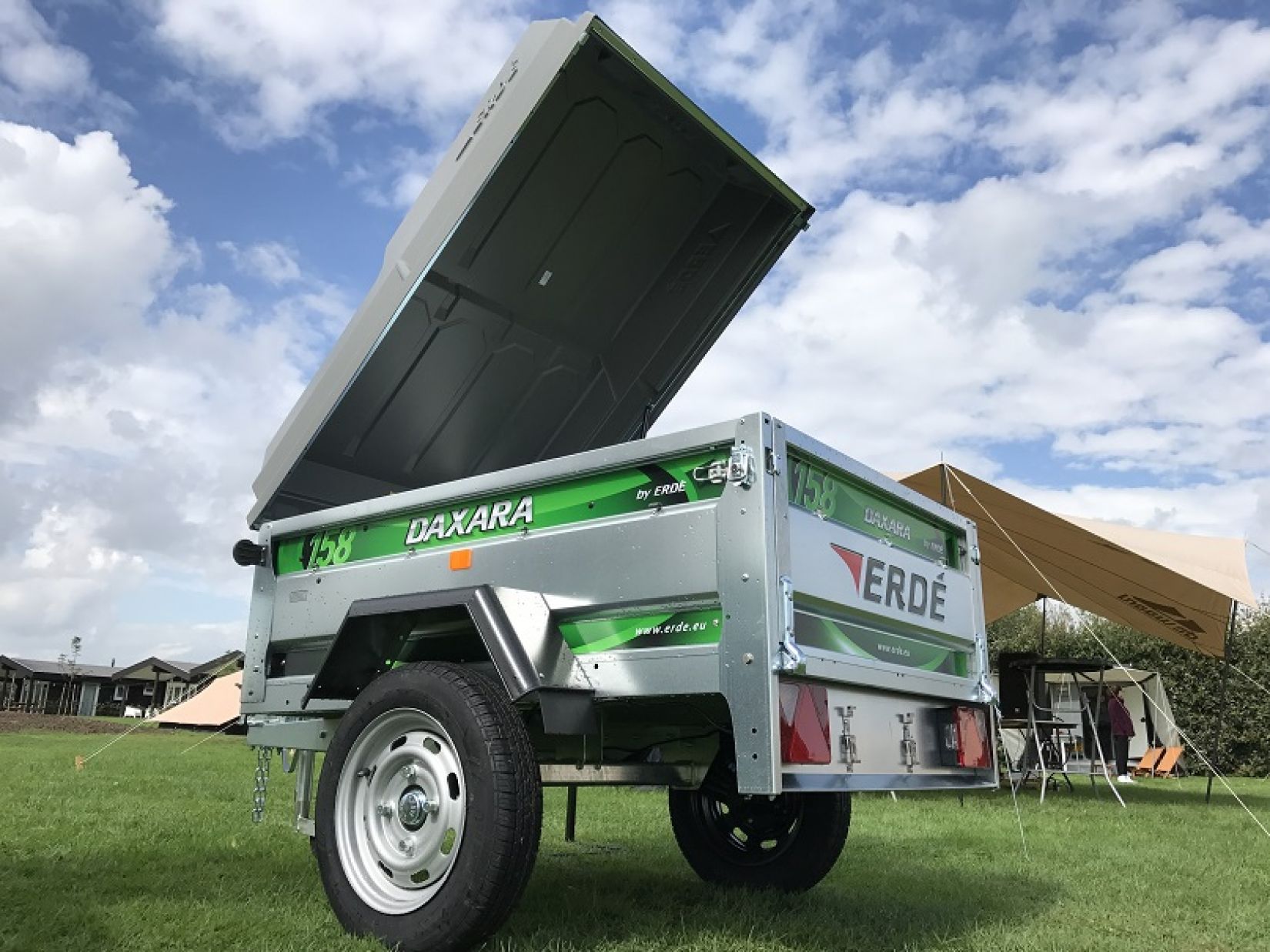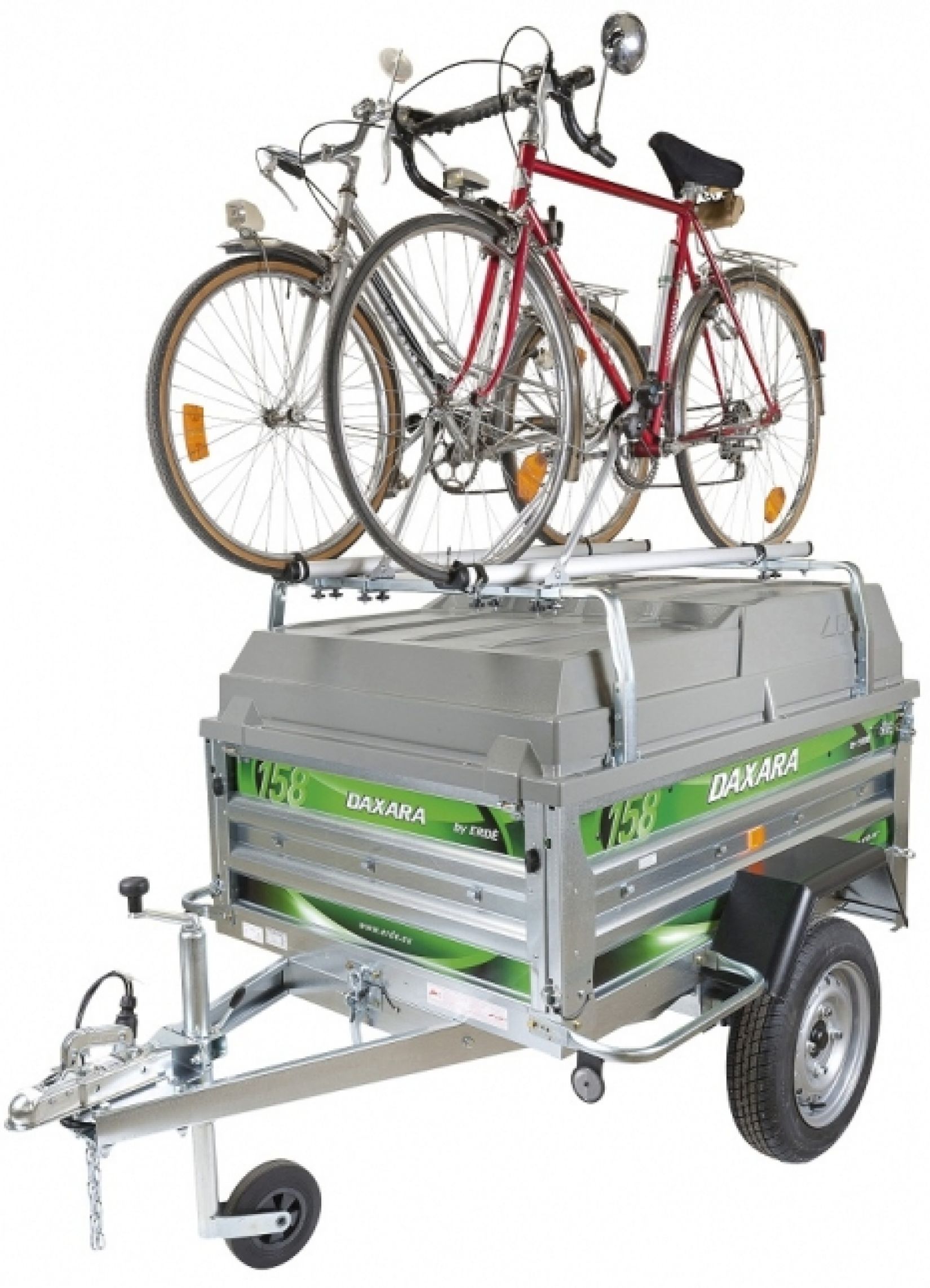 De DaXara 158 is een fraaie, ruime en multifunctionele aanhangwagen. Hij is rondom dubbelwandig en heeft een V-dissel. De bak is kantelbaar en de voor- en achterklep zijn neerlaatbaar en afneembaar. Naast een rubbergeveerde as zijn schokbrekers gemonteerd. Deze combinatie zorgt voor een perfect veercomfort. Behalve als bagagewagen kan de Daxara 158 ook als gewone aanhanger worden gebruikt. De deksel is namelijk met 1 bout te demonteren. Wanneer op de deksel een imperiaal gemonteerd wordt kan er probleemloos 2 volwassen en 2 kinderfietsen vervoerd worden. Voor fietsers is deze bagagewagen dan ook een prima reisgezel. Doordat de achterlichten verzonken zijn en de V-dissel eenvoudig te verwijderen is past deze aanhanger rechtopstaand in elke garage.