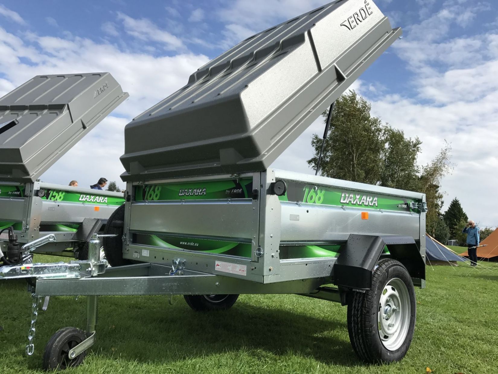 De DaXara 168 is een mooie, ruime en multifunctionele aanhangwagen. Hij is rondom dubbelwandig en heeft een V-dissel. De DaXara 168 heeft een rubbergeveerde as en bovendien schokbrekers. Deze combinatie zorgt voor een prima veercomfort en perfect weggedrag. Met deksel is de inhoud ca. 1300 ltr. De deksel kan gemakkelijk verwijderd worden zodat deze bagagewagen ook als gewone aanhanger gebruikt kan worden. Zowel de voor- als achterklep is neerlaatbaar en afneembaar. De V-dissel kan zonodig op eenvoudige wijze gedemonteerd worden waardoor het mogelijk is om de aanhanger rechtopstaand te stallen.