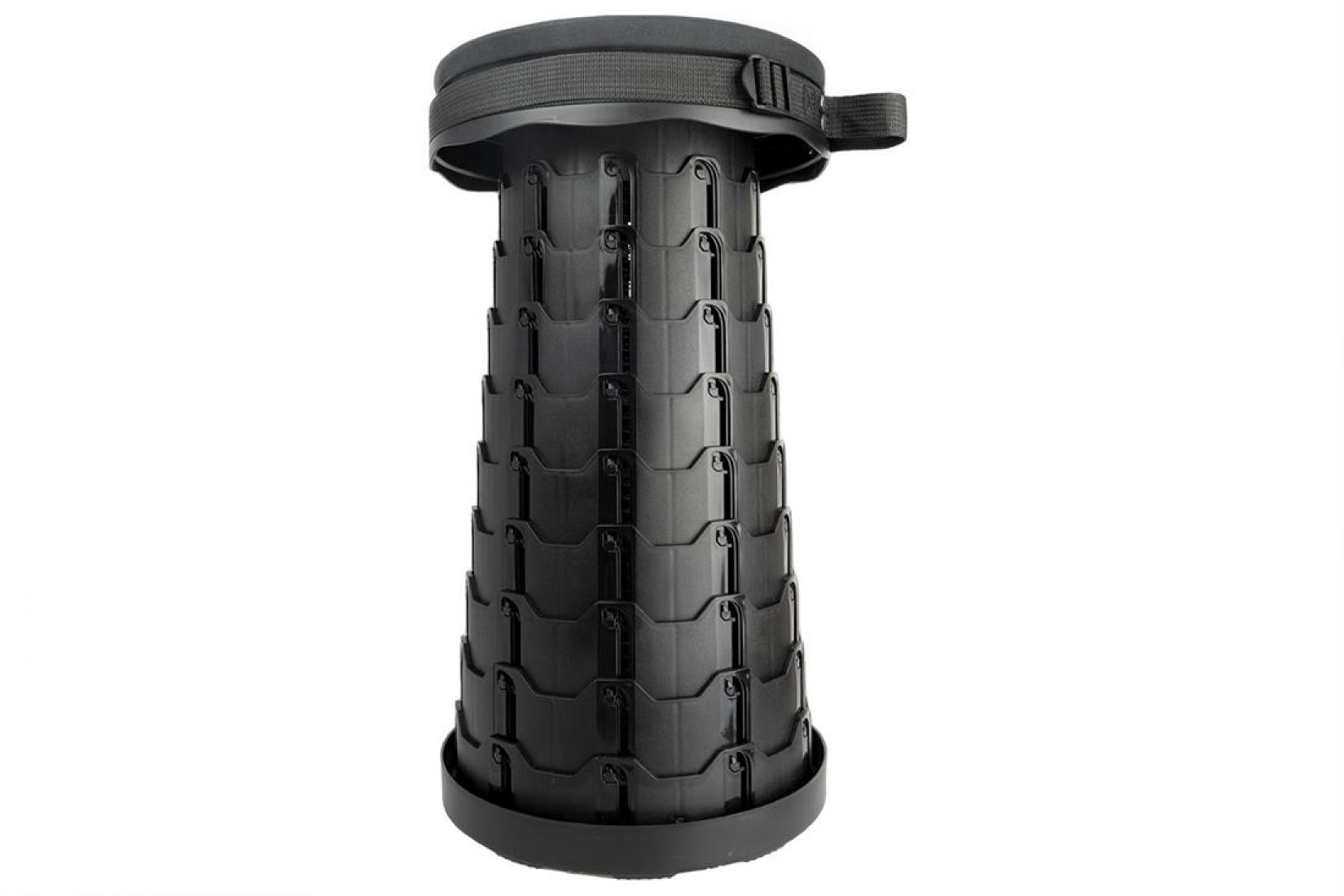 Vous pouvez facilement emporter le tabouret réglable avec vous dans la main ou par-dessus l’épaule grâce à la sangle de transport.