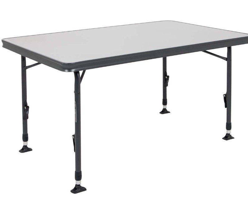 Een luxe en stijlvolle tafel. Deze lichtgewicht campingtafel is voorzien van een hittebestendig en watervast tafelblad en heeft een extra verstevigde aluminium constructie. Daarnaast zorgt de afwerking van de poten en van de tafelrand voor een stijlvolle uitstraling. De tafel beschikt over traploos verstelbare poten (52-74cm) die zijn in te klappen, hierdoor is deze tafel eenvoudig en compact te vervoeren (ingeklapt (lxbxh): 110x70x3,8 cm). Door dat deze tafel beschikt over stabilisatie voeten, staat hij stabiel op elke ondergrond. Maximale belasting: 50 kilogram.
