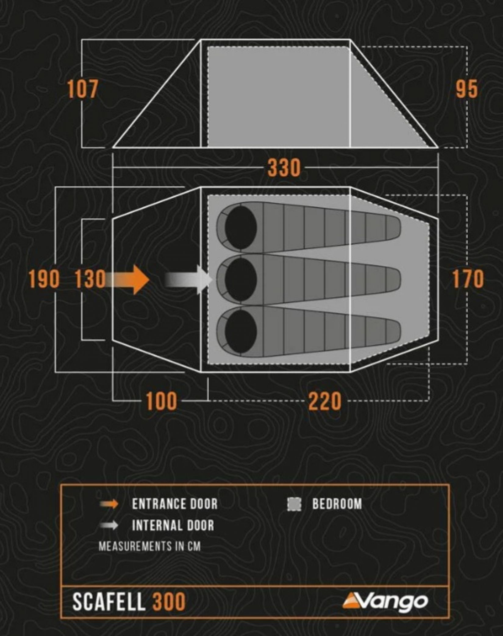 De Scafell 300 3-man tent heeft twee identieke stokken en een uitzonderlijke ruimte-gewichtsverhouding. De Scafell is snel en eenvoudig op te zetten.