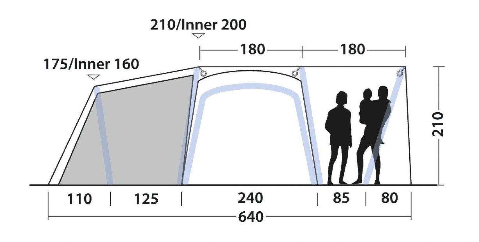 De veelzijdige Oakdale 5PA met 3 zones biedt vijf slaapplaatsen in twee Premier-slaapgedeeltes en beschikt over Quick & Quiet-toegang tussen de buitenste en binnenste zones. Voldoende binnenruimte plus gemakkelijker openen/sluiten wordt verzekerd door de steile voorwand. Met zijn unieke Outwell Wing Lounge die flexibiliteit, vele ramen en voldoende ventilatie biedt, zorgt deze tent voor een luchtig woongedeelte.