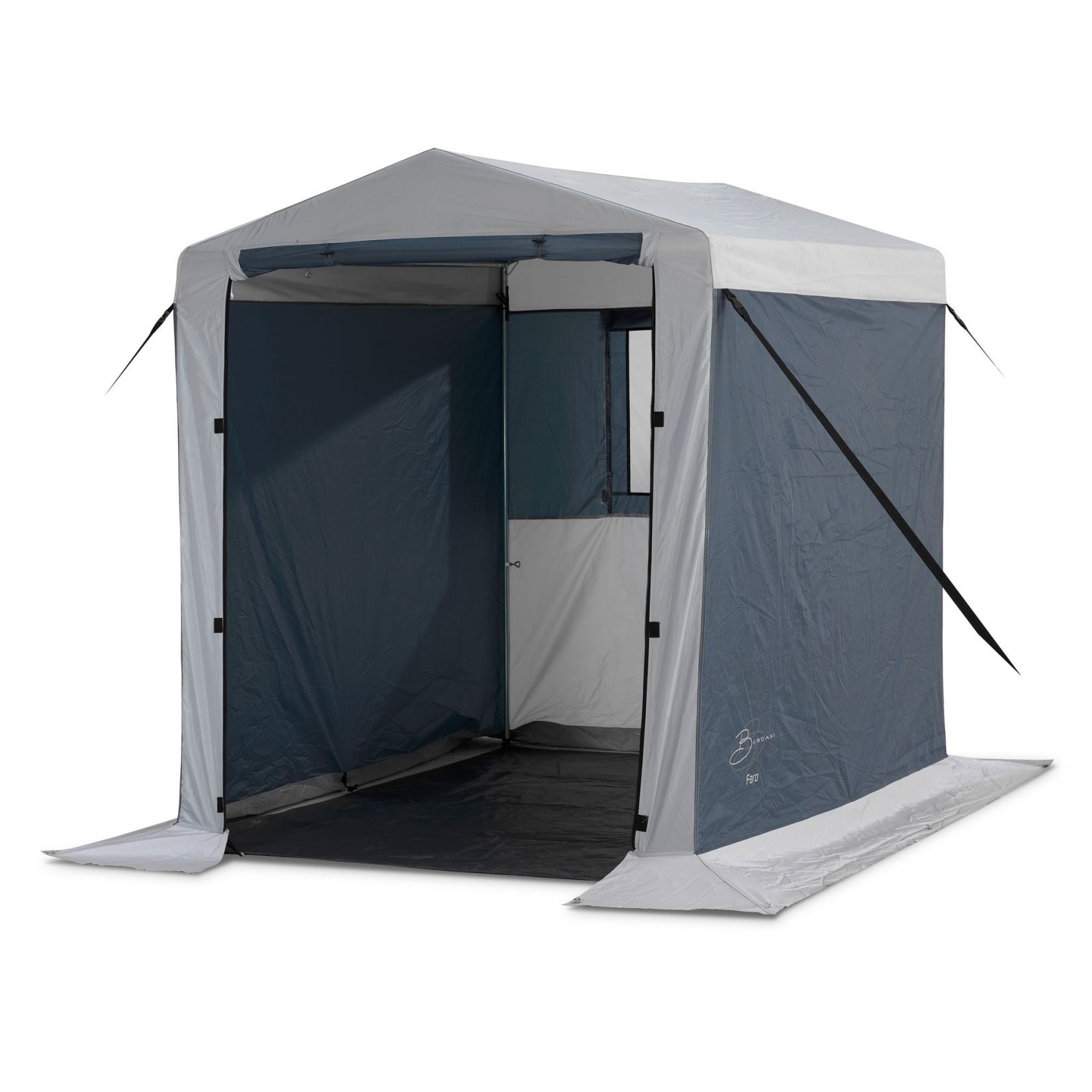 De Bardani Faro schuurtent biedt een maximale opbergruimte door het ontwerp met rechte wanden.