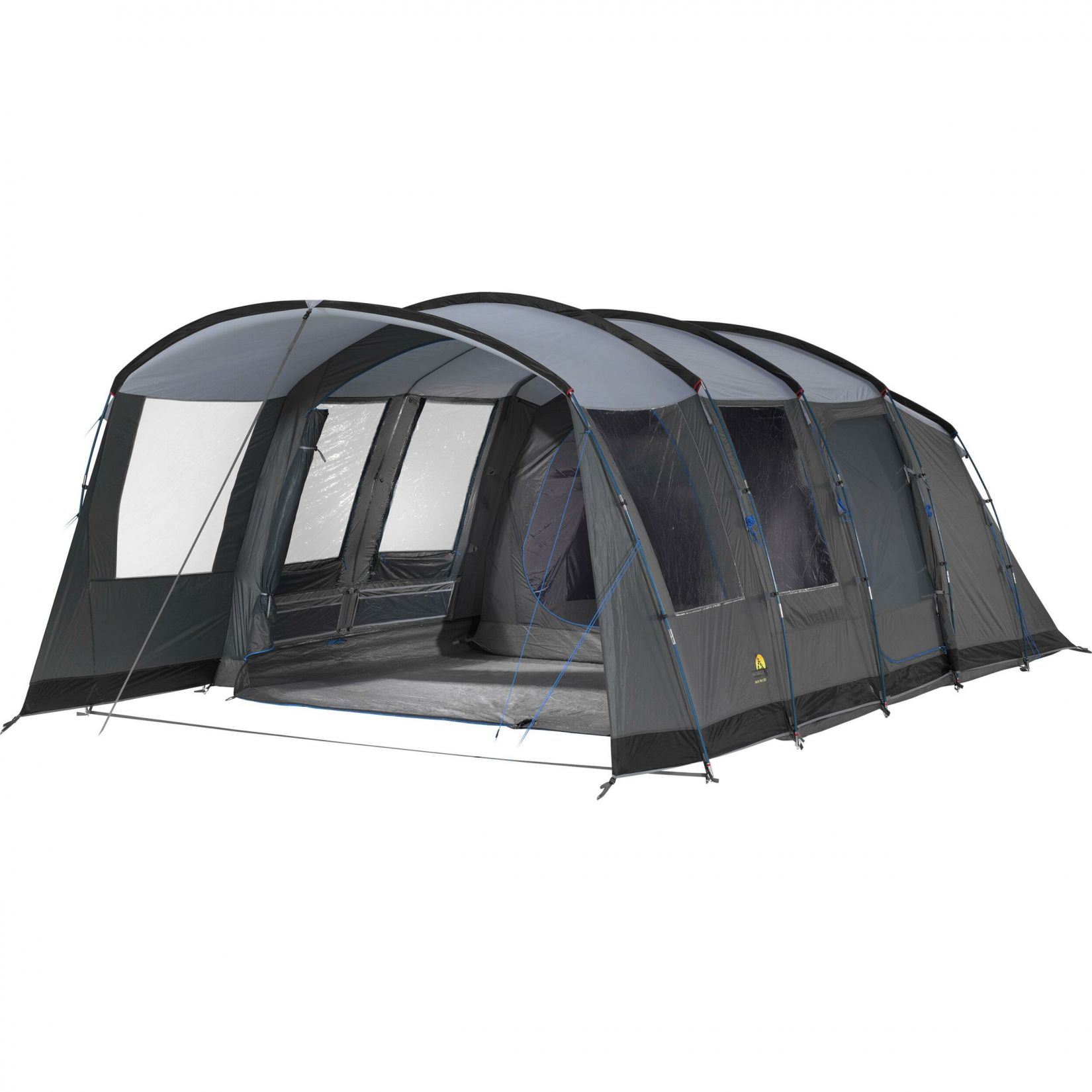 De familietent is zeer ruim en kan flexibel worden ingedeeld. De slaapcabines bieden voldoende slaapplek voor 5 personen. De wand tussen deze slaapcabines kan weg gehaald worden. Zo kunt u een grotere slaapcabine creëren. Daarnaast kunt u de leefruimte vergroten door de voorwand weg te rollen. Aan de zijkant is een ingang met een horrengaas. Dit gaas zorgt voor een betere ventilatie en houdt insecten buiten. In de gehele tent zijn voldoende opbergmogelijkheden. Dankzij de rechte wanden is er voldoende stahoogte.
