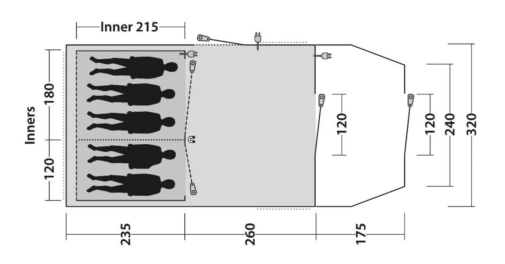 De Outwell Phoenix 5 is een compact driezone-tent. Het beschikt over het nieuwe en innovatieve PowerTec-stoksysteem met vierkante segmenten die 40% beter presteren dan standaard stokken, wat zorgt voor extra kracht en windbestendigheid. Bovendien hebben de stokpunten een gloei-in-het-donker-effect om struikelgevaar te voorkomen. Het tent heeft ook twee verduisterde slaapcabines met goede ventilatie en gepatenteerde magnetische Quick & Quiet-deuren voor gemakkelijke, geruisloze toegang. De muur van de derde zone heeft gaasramen met oprolbare gordijnen, en de grote natte zone kan worden gebruikt voor opslag of als beschutte ingang tijdens slecht weer.