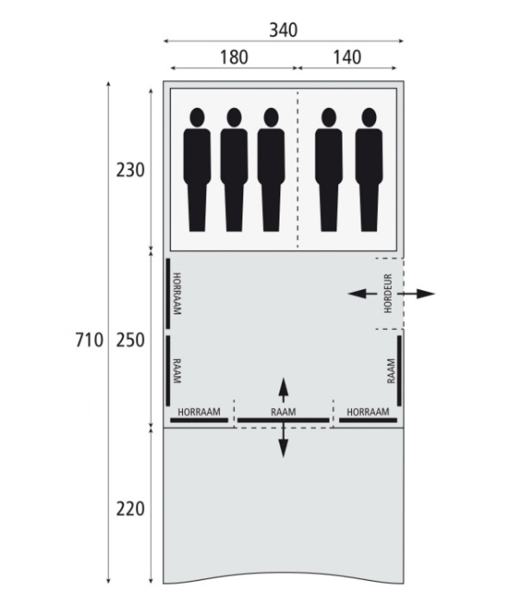 De Bardani Spitfire 340 XL Deluxe RSTC tunneltent is een familietent voor maximaal vijf personen. De tent heeft een extra diepe luifel een zij-ingang met hordeur. De tent beschikt over twee donkere slaapcabines.