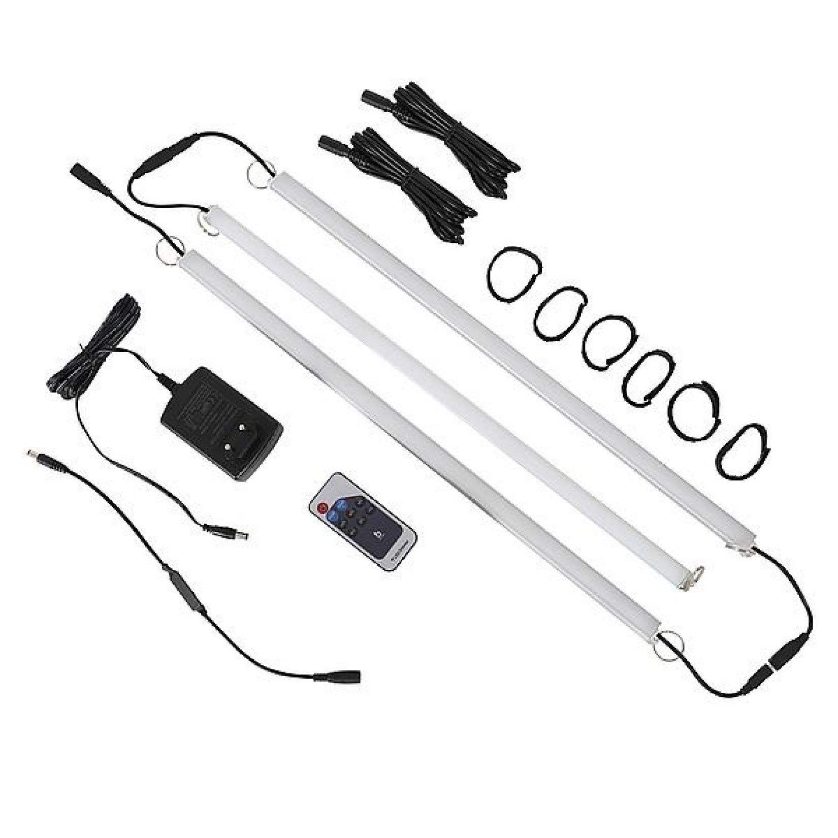 Hoogwaardige (voor-)tent LEDstrip. Dit is een set van 3 lampen en is voorzien van 30 high power LED's met een warme lichtkleur voor een sfeervolle en egale verlichting. De lamp is voorzien van een afstandbediening. Hiermee kan de lamp aan en uitgezet worden, maar ook mee gedimpt kan worden. Daarnaast wordt de lamp geleverd met twee ophanghaken en een aansluitsnoer. De lengte van 1 LED strip is 50 centimeter.