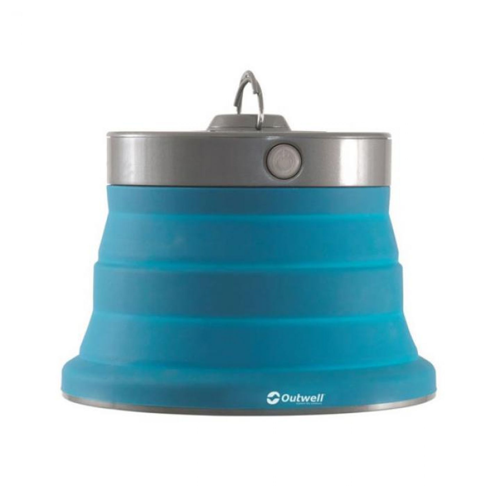 Opvouwbare tentlamp op batterijen, uit de collectie Collaps van Outwell. Mogelijkheid om het licht te dimmen door langer op de knop te duwen. Ophangen is eenvoudig dankzij de dubbele haak.