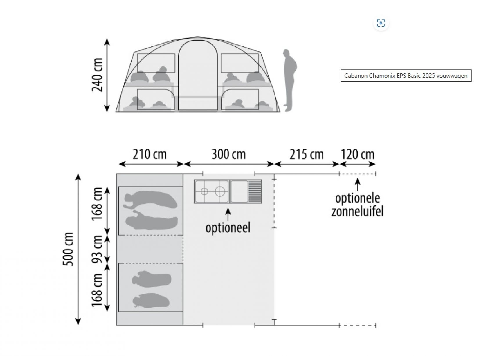 Afmetingen voortent b x d in cm 500 x 300 cm