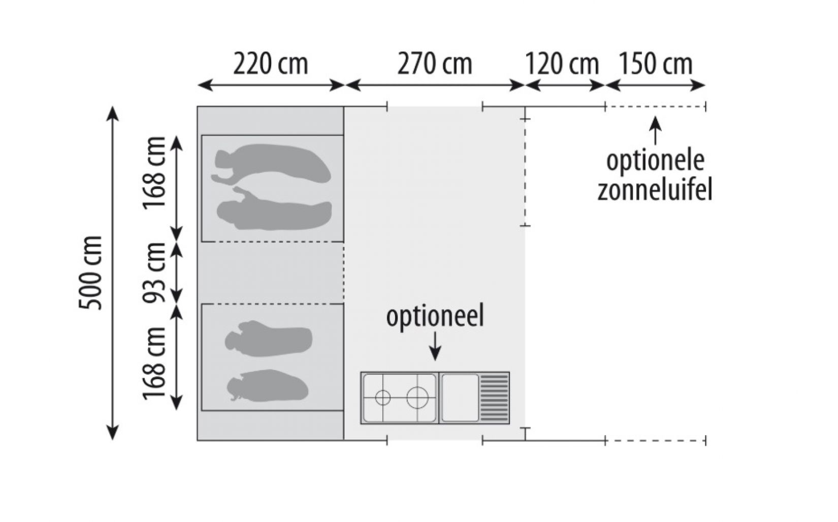 Afmetingen voortent b x d in cm 500 x 270 cm